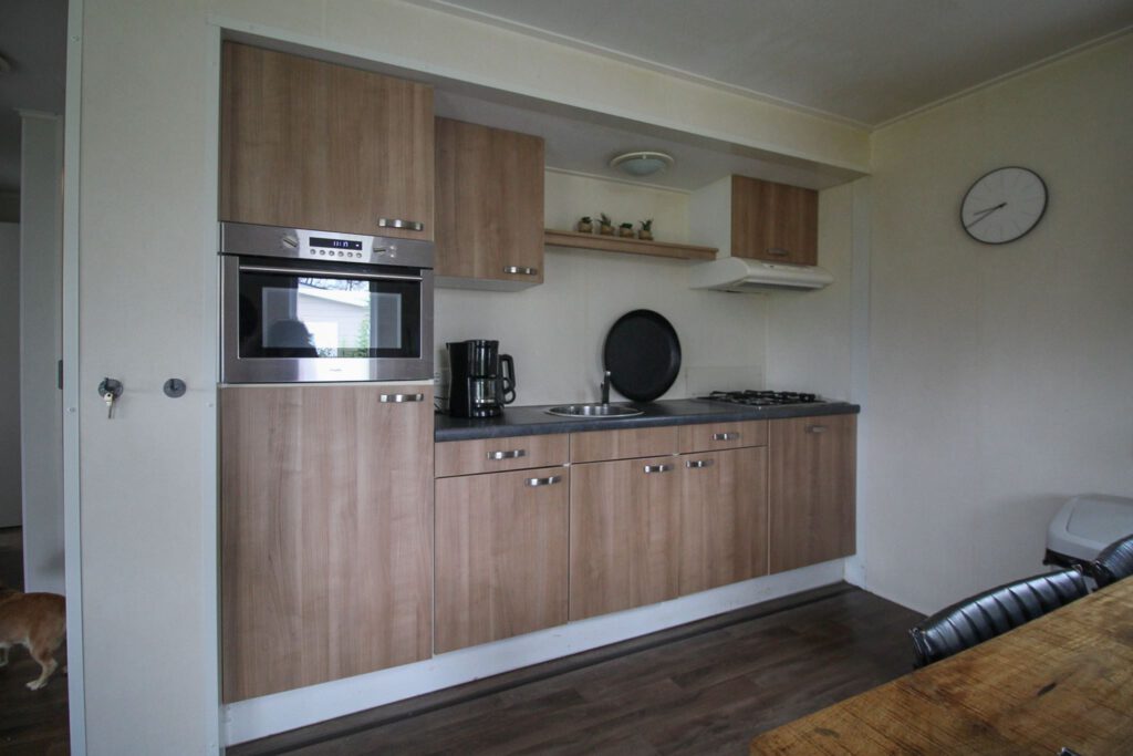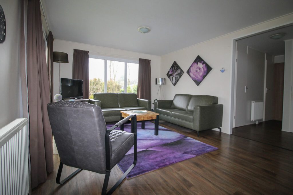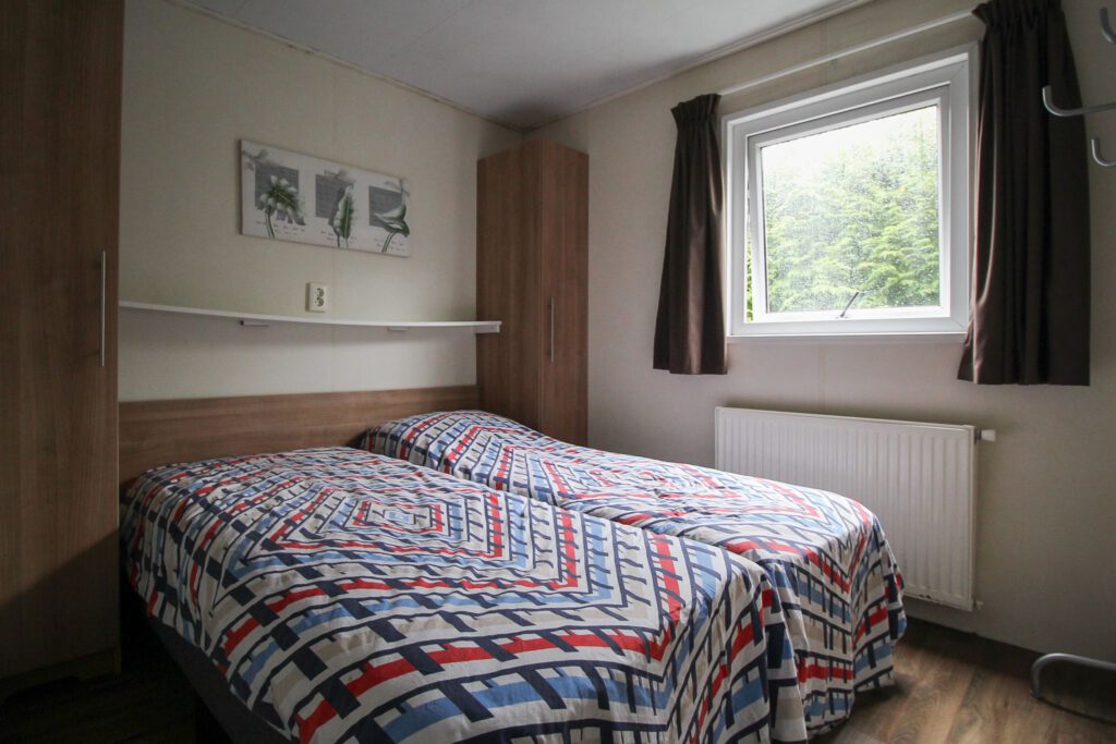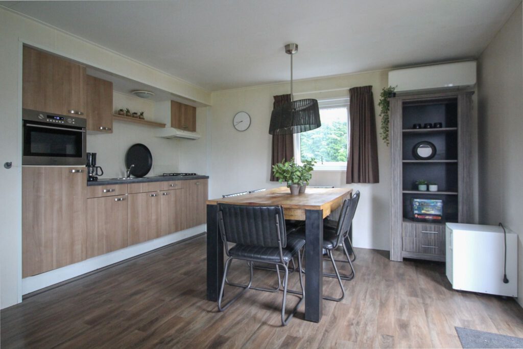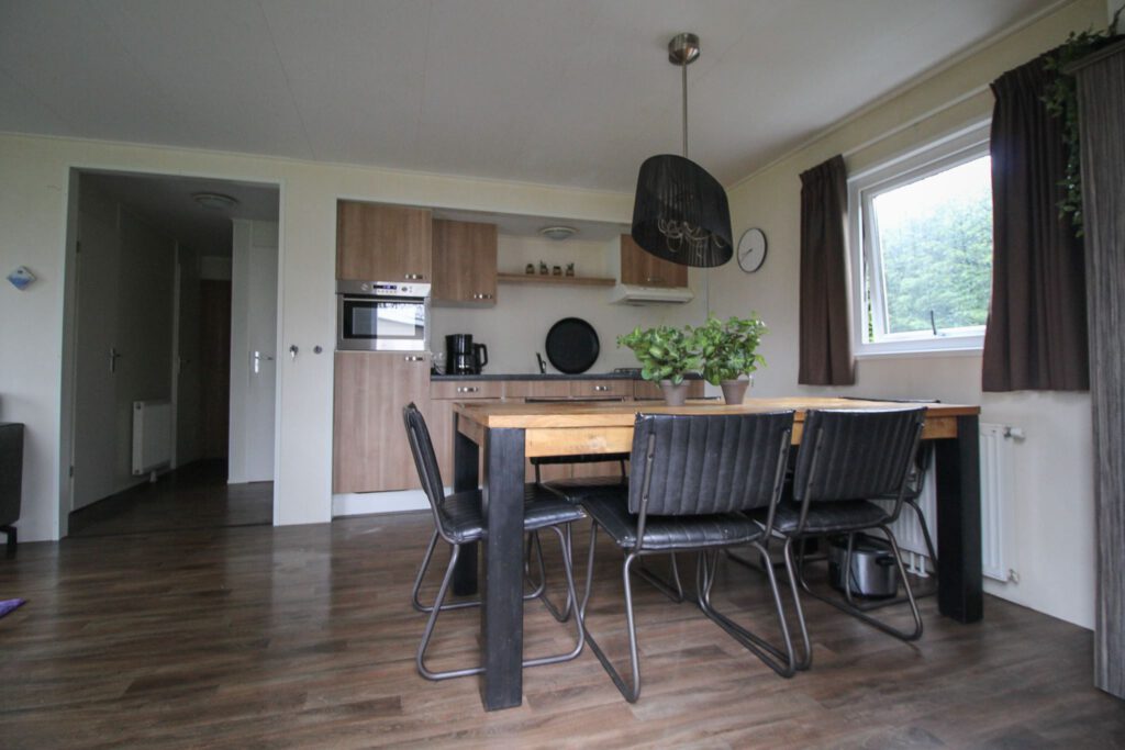 Het vrijstaande chalet biedt plaats aan 6 personen en heeft een oppervlakte van 50m². De woonkamer is ingericht met een gezellige zithoek met tv en aan de 6 persoons eethoek kun je heerlijk genieten van je vakantie. De open keuken is voorzien van een magnetron, vaatwasser en koffiezetapparaat. Het chalet beschikt verder over drie slaapkamer, waarvan een slaapkamer met een tweepersoonsbed en twee slaapkamers met twee eenpersoonsbedden. De badkamer beschikt over een douche, wastafel en toilet. De tuin is voorzien van een terras en een gazon.